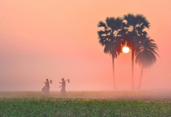 আলস্যের চাদর মুক্ত করে কুয়াশার ধূম্রজাল চিরে পূর্ব আকাশে সূর্য নিজেকে জানান দেওয়ার কাজে ব্যস্ত।