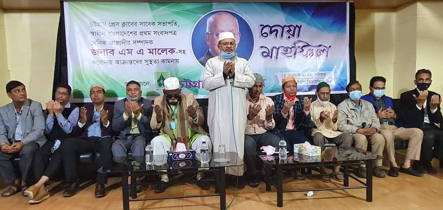 চট্টগ্রাম প্রেস ক্লাবের সাবেক সভাপতি ও স্বাধীন বাংলাদেশের প্রথম সংবাদপত্র দৈনিক আজাদীর সম্পাদক আলহাজ্ব এম এ মালেকসহ ক্লাবের অসুস্থ সদস্যদের রোগমুক্তি কামনায় আজ ১৫ জানুয়ারি শনিবার দোয়া মাহফিল অনুষ্ঠিত হয়।