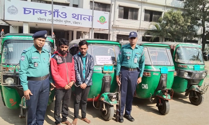 চট্টগ্রাম: চট্টগ্রাম সিটির চান্দগাঁও থানার কাপ্তাই রাস্তার মাথা এলাকায় অভিযান চালিয়ে সিএনজি-অটোরিকশা চোর চক্রের দুই সদস্যকে আটক করেছে পুলিশ। এ সময় চারটি সিএনজি অটোরিকশা উদ্ধার করা হয়। গ্রেফতার দুজন হলেন মো. জামশেদ উদ্দিন (৩২) ও মো. জমশেদ (২৮)। বৃহস্পতিবার (২৫ জানুয়ারি) রাত থেকে শুক্রবার (২৬ জানুয়ারি) সকাল পর্যন্ত অভিযান চালিয়ে তাদেরকে গ্রেফতার করা হয়।