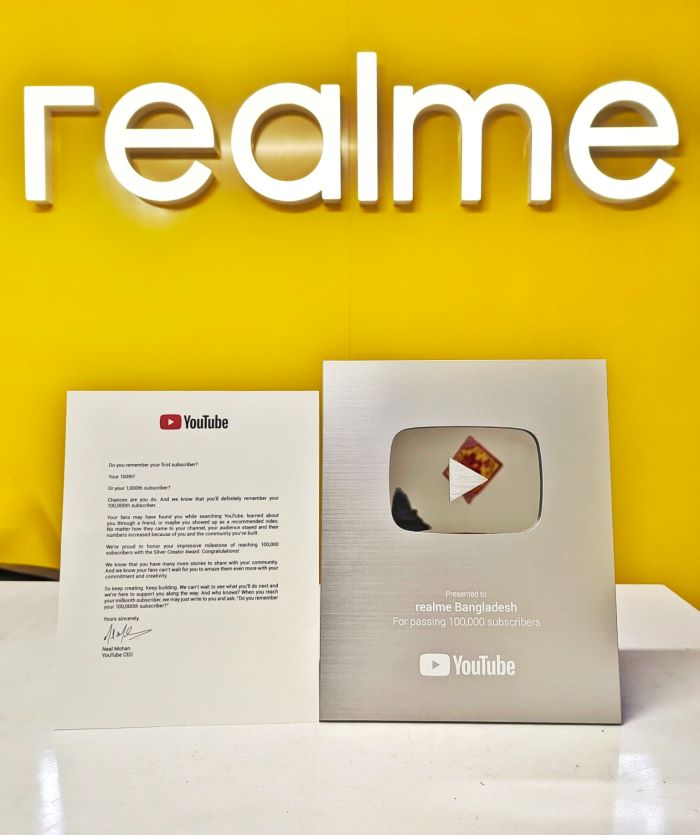 সব নিয়ম-নীতি অনুসরণ করার মাধ্যমে কোন ইউটিউব চ্যানেল যদি উল্লেখযোগ্য দর্শক সংখ্যা বৃদ্ধি করতে পারে, তবে ইউটিউব কর্তৃপক্ষ সেই চ্যানেলকে স্বীকৃতি দেয়। একইভাবে, রিয়েলমি বাংলাদেশও সব শর্ত পূরণ করায় এ স্বীকৃতি পেয়েছে।