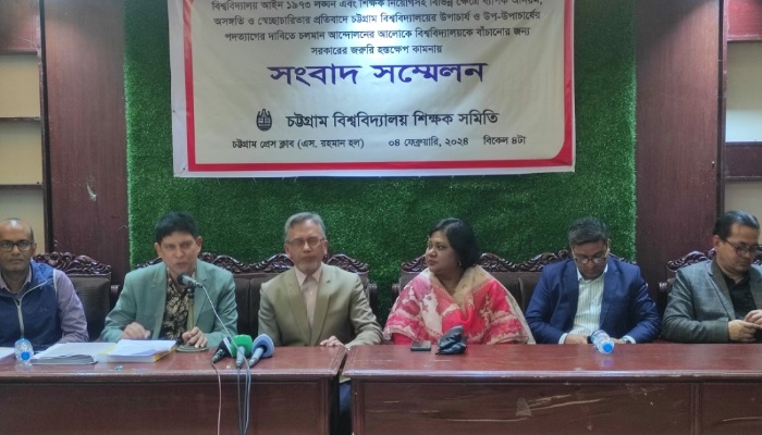 চবির উপাচার্য ও সহ-উপাচার্যের পদত্যাগের দাবিতে চার দিনের কর্মবিরতি শিক্ষক সমিতির