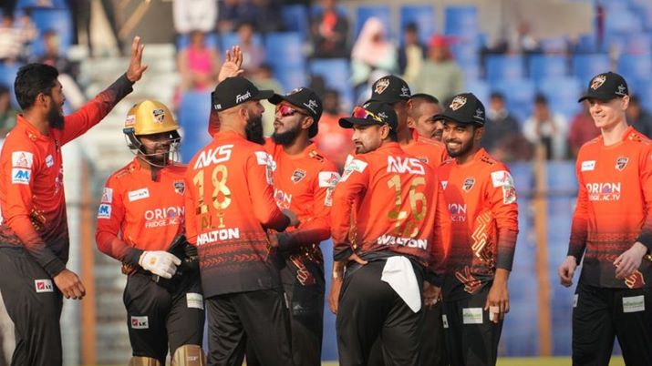 ঘরের মাঠে বড় লক্ষ্য তাড়া করতে নেমে শুরু থেকে আগ্রাসী ছিল চট্টগ্রামের ব্যাটাররা। মাত্র সাত দশমিক এক ওভারের মধ্যে দলকে ৮০ রান এনে দেন দুই ওপেনার তানজিদ হাসান তামিম ও জশ ব্রাউন। ২৪ বলে পাঁচ চার ও দুই ছক্কায় ৪১ রান করে মুস্তাফিজুর রহমানের শিকার হন তানজিদ। এরপর ক্রিজে স্থায়ী হতে পারেননি ব্রাউনও। পরের ওভারে আক্রমণে আসা রিশাদ হোসেনকে তুলে মারতে গিয়ে হৃদয়ের হাতে ক্যাচ তুলে দেন তিনি। ২৩ বলে তিন চার ও দুই ছক্কায় ৩৬ রানে থামে তার ইনিংস। ১১তম ওভারে ফের আক্রমণে এসে চট্টগ্রামের ইনিংসের ভিতই নড়বড়ে করে দেন রিশাদ। তার লেগ স্পিনে কুপোকাত হয়ে তিন বলের মধ্যে সাজঘরের পথ ধরেন টম ব্রুস (১১) ও শাহাদাত হোসেন (১২)।