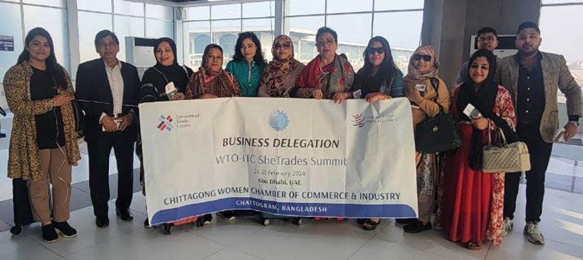 চট্টগ্রাম: প্রথম বারের মত ১৩তম ওয়ার্ল্ড ট্রেড অর্গানাইজেশন মিনিস্টারিয়াল কনফারেন্সের আওতায় দুই দিনের আইটিসি শিট্রেডস সম্মেলনে যোগ দিতে চিটাগাং উইম্যান চেম্বার অব কমার্স এন্ড ইন্ডাস্ট্রির (সিডব্লিউসিসিআই) ১২ সদস্যের প্রতিনিধি দল শুক্রবার (২৩ ফেব্রুয়ারি) সংযুক্ত আরব আমিরাতের উদ্দেশে ঢাকা ত্যাগ করেছেন। প্রতিনিধি দলের নেতৃত্ব দিচ্ছেন সিডব্লিউসিসিআইয়ের প্রেসিডেন্ট মনোয়ারা হাকিম আলী।