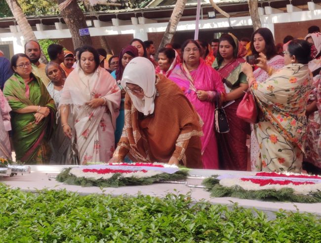 শ্রদ্ধাঞ্জলি অর্পণের পর নীরবতা পালন শেষে তিনি শেখ মুজিবুর রহমানসহ পরিবারের সব শহীদের রুহের মাগফেরাত কামনা করে মোনাজাত করেন।