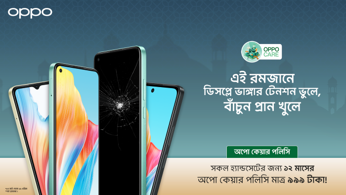 এ স্ক্রিন প্রোটেকশন প্ল্যানের মাধ্যমে অফার চলাকালীন অসাবধানতাবশত হাত থেকে ফোন পড়ে যাওয়া, আঁচড় লাগা ও ভেঙে যাওয়ার ফলে মোবাইল ফোনের ডিসপ্লে ক্ষতিগ্রস্ত হলে তা এক বার পরিবর্তন করতে পারবেন। মাত্র ৯৯৯ টাকার এ স্ক্রিন প্রোটেকশন প্ল্যান অফারের মাধ্যমে ফোন কেনার এক বছরের মধ্যে ক্ষতিগ্রস্ত ডিসপ্লে দ্রুত ও বিনামূল্যে ঠিক করে নিতে পারবেন। তাই, ফোনের স্ক্র্যাচসহ ডিসপ্লের অন্য যে কোন সমস্যায় আর কোন দুশ্চিন্তা নেই। অপোর বিশেষ যত্নে আপনার ফোনের ডিসপ্লে দিনের পর দিন ও মাসের পর মাসও থাকবে উজ্জ্বল।
