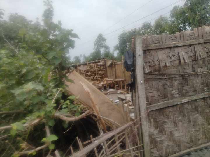ক্ষতিগ্রস্ত বসতঘরের মালিক মনজুর বলেন, আমার থাকার একমাত্র ছোট ঘরটার চালা বাতাসে নিয়ে গেল।