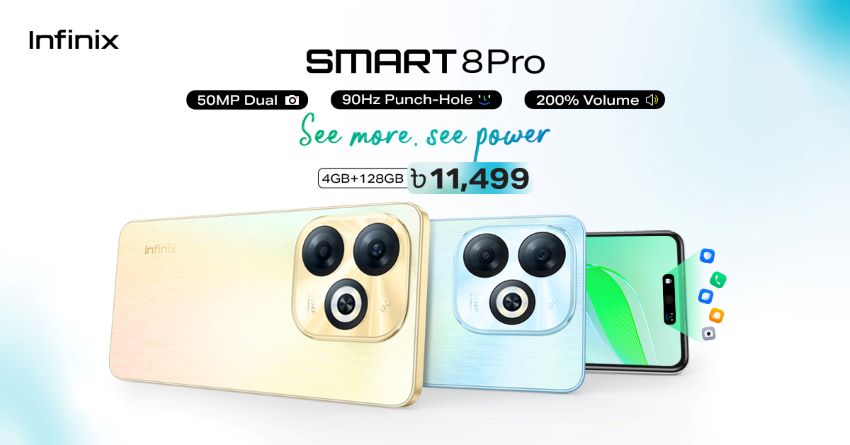 পুরো দেশের ইনফিনিক্স অফিশিয়াল রিটেইল স্টোরে পাওয়া যাচ্ছে ইনফিনিক্স স্মার্ট ৮ প্রো। ফোনটির দাম মাত্র ১১ হাজার ৪৯৯ টাকা।