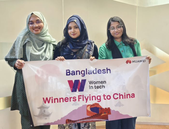 ঢাকা: প্রযুক্তি খাতের নারীদের জন্য আয়োজিত হুয়াওয়ের ফ্ল্যাগশিপ প্রতিযোগিতা ‘উইমেন ইন টেক’-এর তিন জয়ী চীনের উদ্দেশ্যে রওনা দিয়েছেন। জয়ীরা ইন্টারন্যাশনাল ডিজিটাল এনার্জি এক্সপো (আইডিইই) ২০২৪ প্রদর্শনীতে অংশ নেবেন। এছাড়া, তারা হুয়াওয়ের প্রধান কার্যালয় ও ডংগুয়ান ক্যাম্পাসে প্রশিক্ষণের সুযোগ পাবেন। মঙ্গলবার (৩ সেপ্টেম্বর) শুরু হওয়া এ সফর আগামী ১০ সেপ্টেম্বর শেষ হবে।