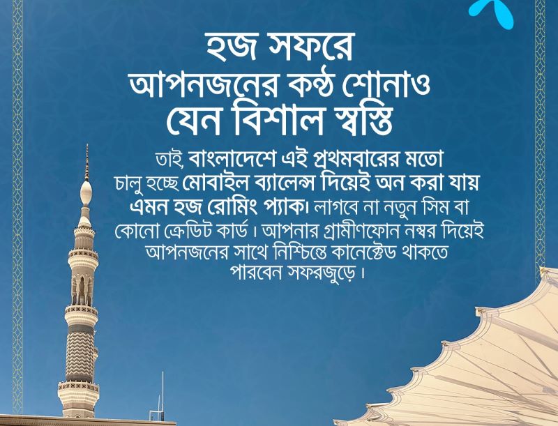 মোবাইল ব্যালেন্স দিয়ে হজ রোমিং প্যাক কেনার সুবিধা আনল গ্রামীণফোন