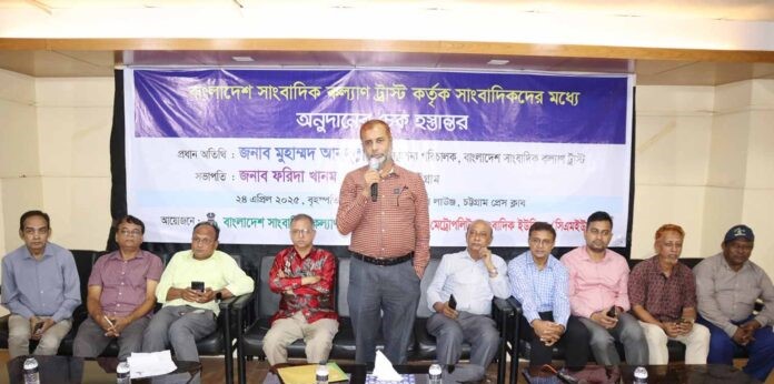 বৃহস্পতিবার (২৪ এপ্রিল) বৃহস্পতিবার বিকেলে চট্টগ্রাম প্রেস ক্লাবের ভিআইপি লাউঞ্জে বাংলাদেশ সাংবাদিক কল্যাণ ট্রাস্ট কর্তৃক অনুদানের চেক হস্তান্তর অনুষ্ঠানে তিনি এ কথা বলেন।