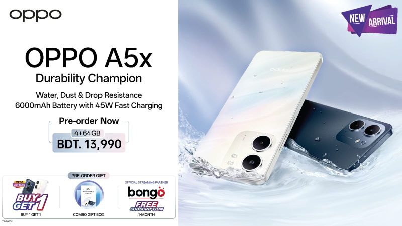 অপো ‘এ৫এক্স’-এ গ্রাহকরা পাবেন আইপি৬৫ ওয়াটার এবং ডাস্ট রেজিস্ট্যান্স, মেলিটারি-গ্রেড ড্রপ প্রটেকশন এবং ফ্ল্যাগশিপ-লেভেল বিভিন্ন ফিচারের সমন্বয়, যা ব্যবহারকারীদের দেবে এই সেগমেন্টে সর্বোচ্চ স্মার্টফোন এক্সপেরিয়েন্স। মূলতঃ আউটডোরে ব্যবহারের কথা ভেবে ডিজাইন করা এই মোবাইল স্থায়িত্ব ও পারফরম্যান্সের দারুণ এক প্যাকেজ।
