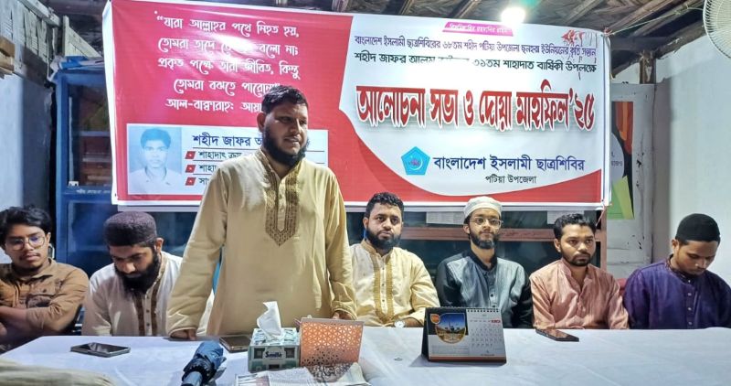 তাঁর ৩১তম শাহাদাত বার্ষিকী উপলক্ষে শনিবার (২৬ জুলাই) পটিয়া উপজেলা শিবিরের উদ্যোগে খতমে কোরআন, দোয়া মাহফিল ও আলোচনা সভা অনুষ্ঠিত হয়।