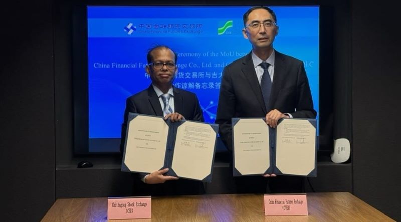 চিটাগং স্টক এক্সচেঞ্জ পিএলসি (সিএসই) ও চায়না ফিনান্সিয়াল ফিউচারস এক্সচেঞ্জ কো লিমিটেডের (সিফেক্স) মধ্যে একটি দ্বিপাক্ষিক সমঝোতা স্মারক (এমওইউ) সই হয়েছে।