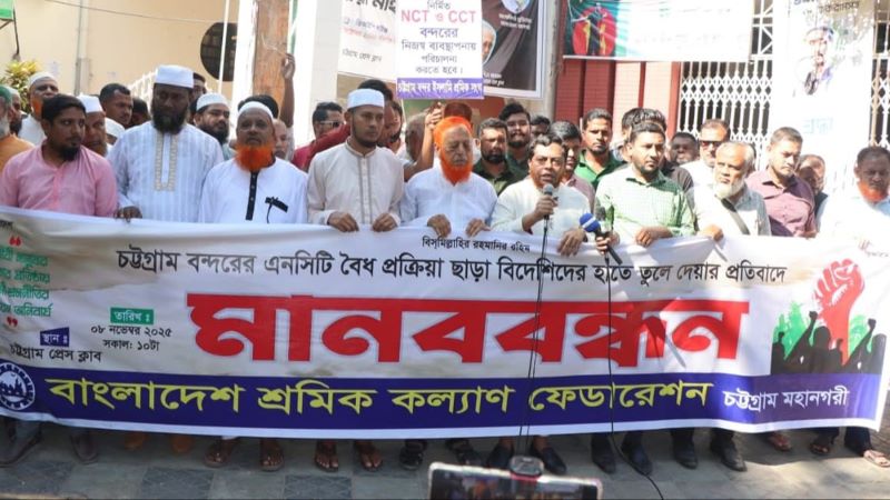 চট্টগ্রাম বন্দর নিয়ে আবার মাঠে নেমেছে বাংলাদেশ শ্রমিক কল্যাণ ফেডারেশন চট্টগ্রাম মহানগর শাখা। বন্দরের এনসিটি আন্তর্জাতিক দরপত্র ছাড়াই বিদেশি অপারেটরের হাতে তুলে দেওয়ার অভিযোগ তুলে প্রতিবাদ জানিয়েছে সংগঠনটি।