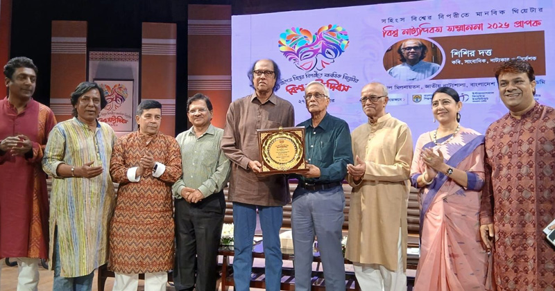 ঢাকা : নাট্যকার ও নির্দেশক শিশির দত্তকে ‘বিশ্ব নাট্য দিবস সম্মাননা ২০২৬’ দেওয়া হয়েছে। ‘সহিংস বিশ্বের বিপরীতে মানবিক থিয়েটার’ প্রতিপাদ্যে ঢাকার সেগুন বাগিচায় বাংলাদেশ শিল্পকলা একাডেমির প্রাঙ্গণে আয়োজিত অনুষ্ঠানে তাকে এই সম্মাননা দেওয়া হয়।